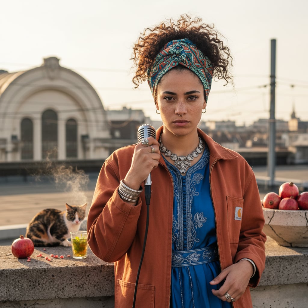 Léonie Foudre was raised in Schaerbeek by a Walloon father who drives the #92 tram and a Moroccan mother who works as a seamstress from the family apartment. After two years of a sociology degree, she dropped out, finding more truth in the stories she overheard bartending at a local café. Her music is born from those shifts—sharp, multilingual observations about the cracks in the pavement and the people who walk over them, all set to the rhythm of a city that never quite sleeps.