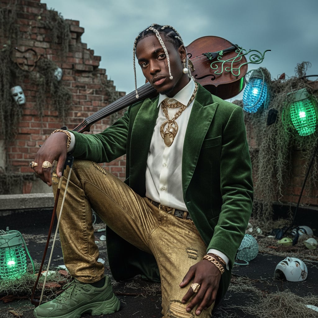 Kai Alston, known as Gilded Algae, was supposed to be a classical cellist. After a spectacular flameout at the Savannah College of Art and Design left him with crippling debt and a deep-seated imposter syndrome, he started making trap music in his small apartment, sampling the very instrument that represented his failure. His songs are the sound of his hometown, Savannah: gothic, humid, and beautiful on the surface but with a deep-seated decay underneath. He still works as a valet, parking cars for the rich tourists who have no idea the man parking their Bentley just dropped a track that sounds like Future composing a funeral march in a haunted mansion.